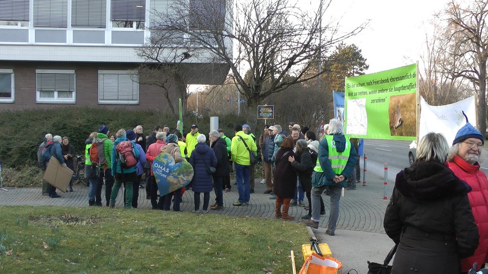 Am Donnerstag, 2.März, fand deshalb eine Mahnwache vor dem Landratsamt Böblingen statt. Ziel war, die Entscheidungen aus der Vergangenheit anzuprangern und andere Vorgehensweisen durch partnerschaftliche Kooperation mit Umweltschutzverbänden und Parteien einzufordern.
