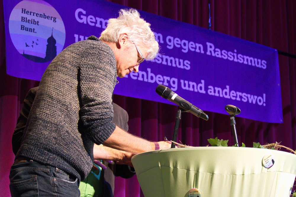 Am 3. Oktober 2019 feierte "Herrenberg bleibt bunt", das Bündnis für eine tolerante, demokratische Gesellschaft gegen Rechtspopulismus und Diskriminierung, in der vollbesetzten Alten Turnhalle in Herrenberg sein einjähriges Bestehen mit einem bunten Fest.