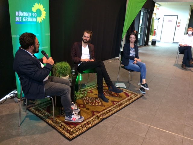 Rund zwanzig Interessierte fanden sich in der locker coronakonform bestuhlten Mensa des Schulzentrums Längenholz in Herrenberg zum Themenabend „Wohnraum schaffen“ in der Reihe „Grüne im Gespräch“ des Ortsverbands Herrenberg und Gäu von Bündnis 90/DIE GRÜNEN ein. Gemeinsam mit dem Ortsverband hatte der Grünen-Bundestagskandidat Tobias B. Bacherle zu diesem Abend eingeladen. Mit Chris Kühn MdB, Sprecher für Bau- und Wohnungspolitik der Bundestagsfraktion sowie Susanne Bay MdL, Sprecherin für Bauen und Wohnen der Grünen-Landtagsfraktion konnten zwei versierte Politiker*innen gewonnen werden. Rainfried Rudolf, Architekt und Alfred Steinki, Baubiologe und Mitglied der Grünen-Gemeinderatsfraktion waren weitere Gäste und Referenten der Veranstaltung, die von Tobias B. Bacherle moderiert wurde.