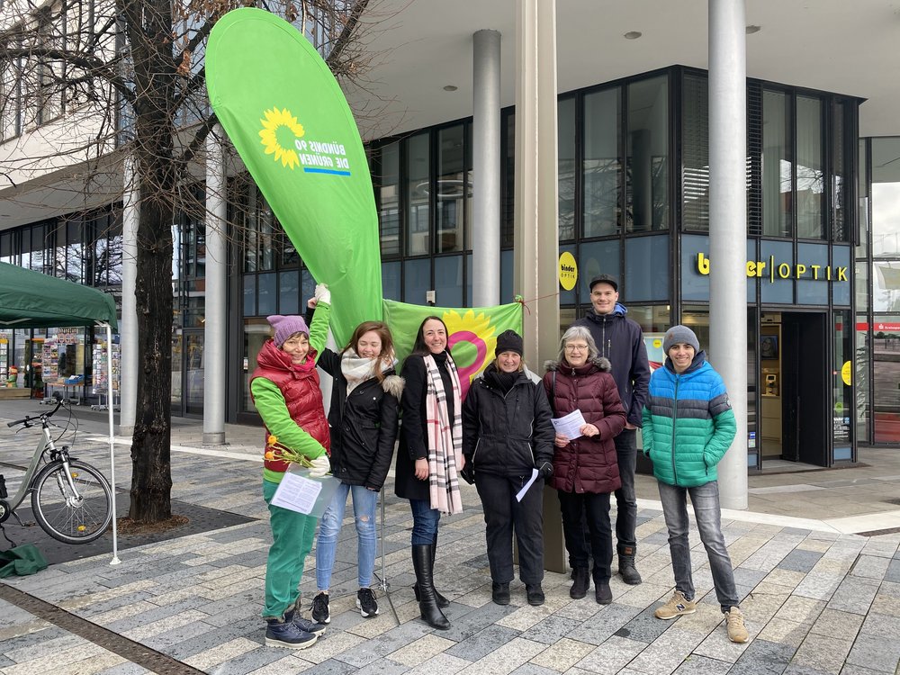 Unter Federführung des Ortsverbands Herrnberger und Gäu wurde vom Grüner Seite anlässlich des Weltfrauentags am 8. März an zentraler Stelle in Böblingen zum Thema schlecht bezahlte und gewürdigte Pflege- und Care-Berufe informiert. Mit diesem inhaltlichen Schwerpunkt folgten die Aktiven dem Vorschlag des bundesgrünen Frauenbüros. Die Passantinnen bekamen von den Grünen-Frauen und -Männern (!) am Infostand heimische Ranunkeln aus einer Herrenberger frauen-geführten Gärtnerei überreicht.