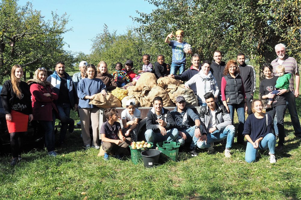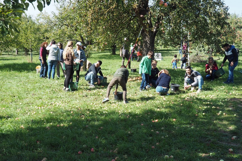 Dass die Aktion und das Miteinander Spaß machte, war offensichtlich. Das gemeinsame Arbeiten, die Fülle der Früchte und das anschließende Picknick boten manche Gelegenheit zum Gespräch zwischen Deutschen und den Menschen aus Afghanistan, Syrien, dem Irak oder Nigeria.