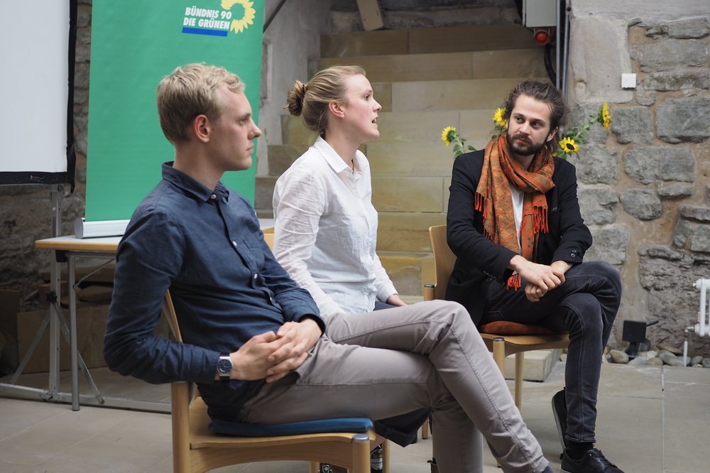 Begrüßt vom Ko-Vorsitzenden des Ortsverbandes, Jonathan Eklund und dem Wahlkreisabgeordneten im Landtag von Baden-Württemberg, Dr. Bernd Murschel MdL, moderierte Tobias Bacherle, Bundestagskandidat für den Kreis Böblingen, das anschließende Gespräch mit Terry Reintke, der jüngsten Grünen Europaabgeordnete und sozialpolitischen Sprecherin der Fraktion sowie mit Armin Bernsee von der Grünen Jugend.